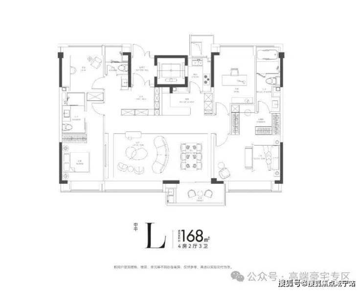 三代同堂:128㎡四房或170㎡叠墅,独立老人房+多功能空间,满足“长幼有序”的居住需求。