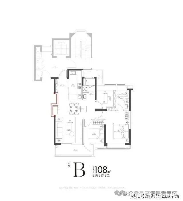 三口之家:102㎡三房两卫,主卧带独立卫浴,儿童房靠近主卧,方便照顾孩子;