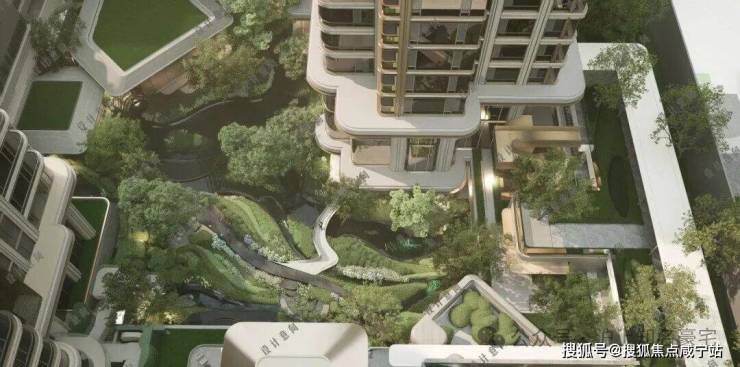 中央核心空间近4000平:抬板后中央空间更具备垂直落差感;下沉庭院挑空面积能做到最大,实现立体景观绿化,在抬板层进行大面积的绿化造景,形成“空中花园”。同时为低层住户提供优美的窗景!