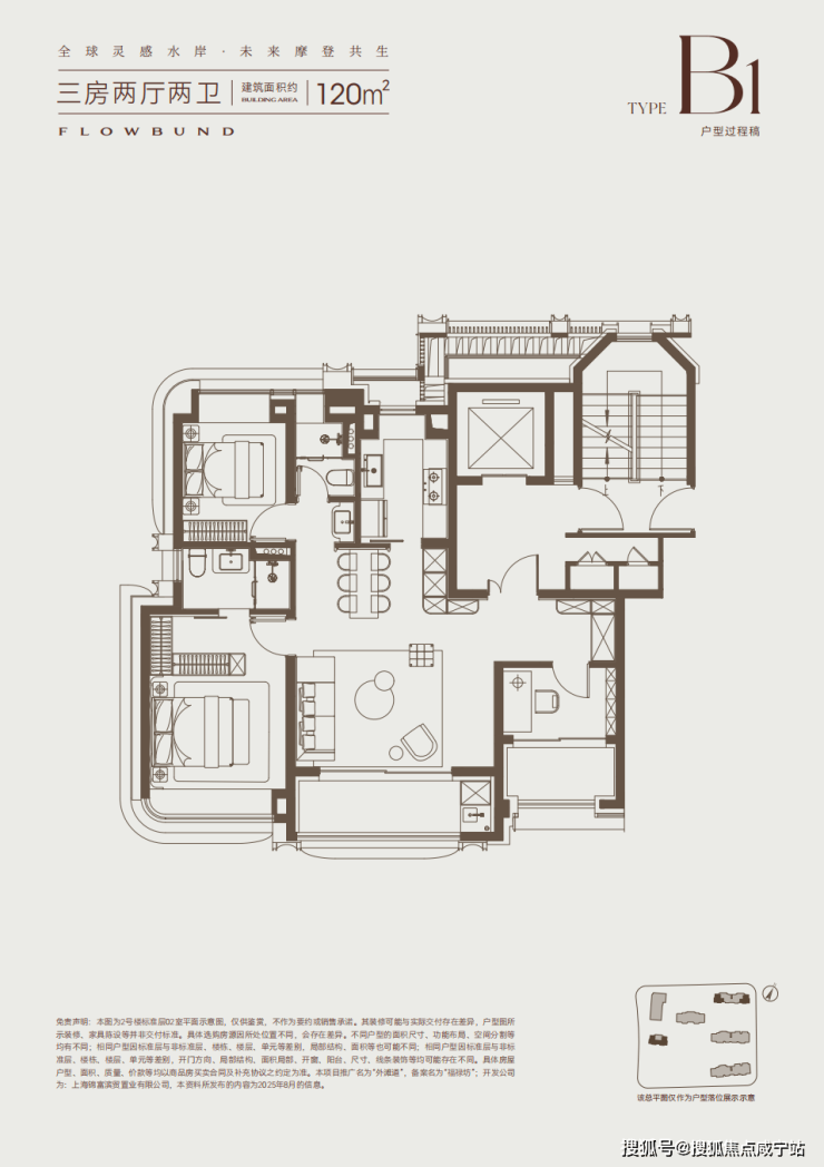 首先是这个盘主力户型:120㎡三房两厅两卫