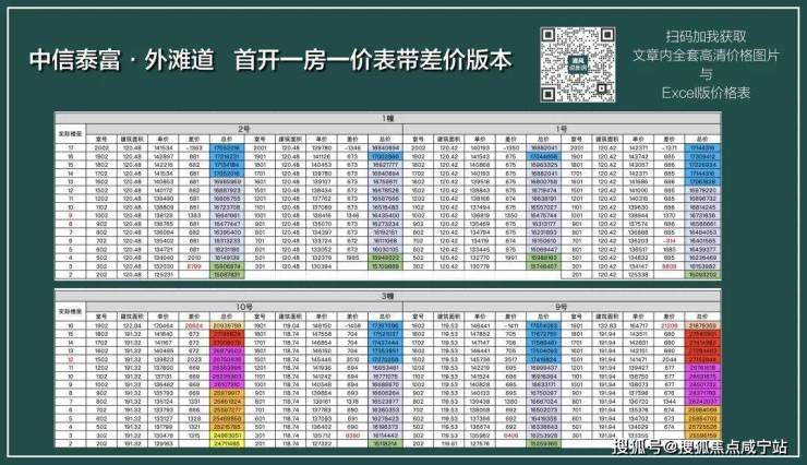 楼层差价我整理在下方表格里,每100万用一个颜色表示,大家可以扫码获取。