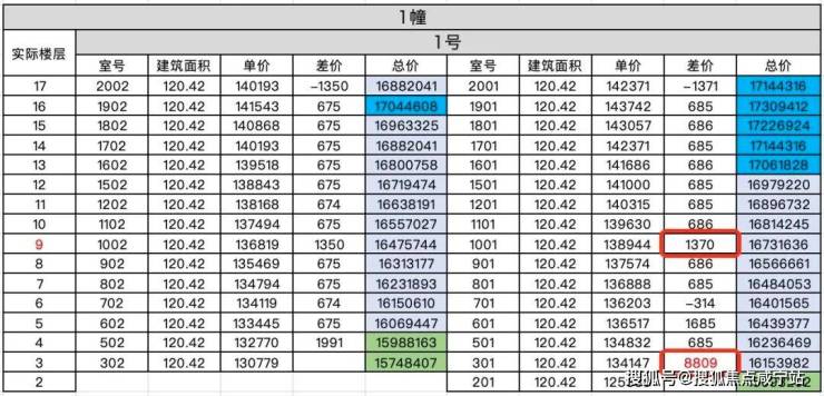 从楼栋价格来说,3幢>1幢,均价相差约2000元/㎡。