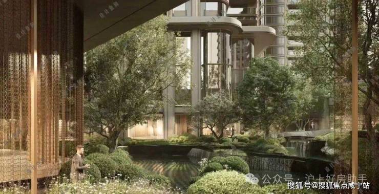 三层归家动线:从地面景观层到架空层,再到入户层,穿越绿植、光影与水景,步步进入私域。