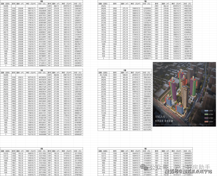项目各户型价格参考: