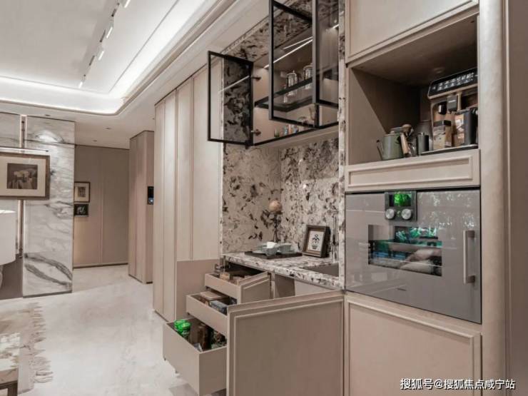 来到客厅,收纳空间更是拉满。次净衣区、餐边柜全部是交付标准,大面积影木的使用,加上装饰主义细节,质感出众: