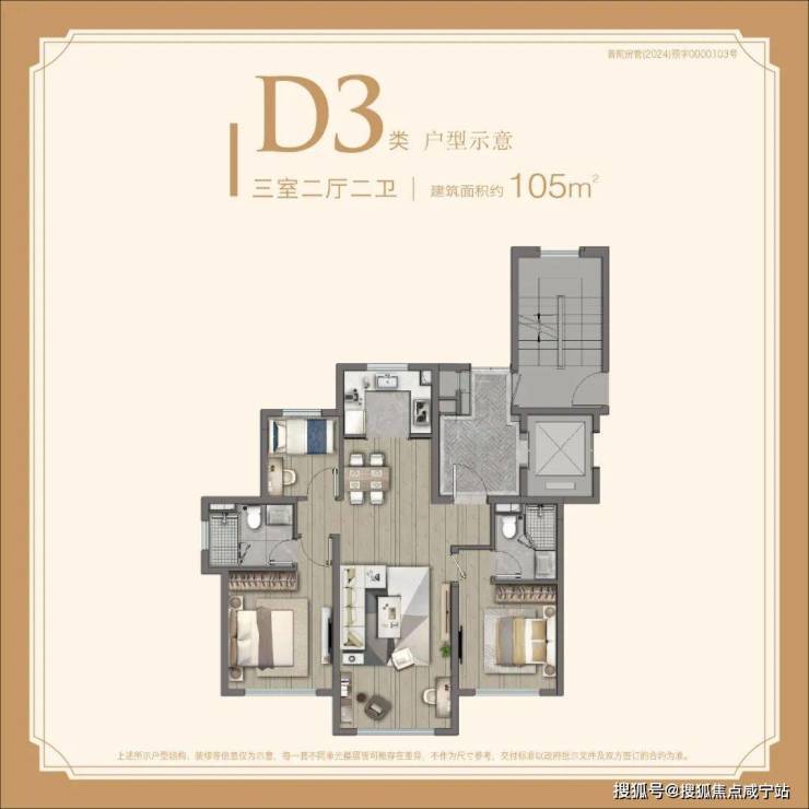 主力在售建面约105㎡3房,中外环鲜有的900-1000万级高品质户型!