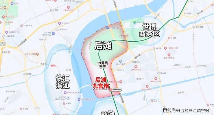 相较于世博片区存在较多老公房社区的现状,后滩基本还是白纸一片, 尤其是迟迟没有动工的沿江九宫格地块,显然更适合发展新一代高端国际住区。