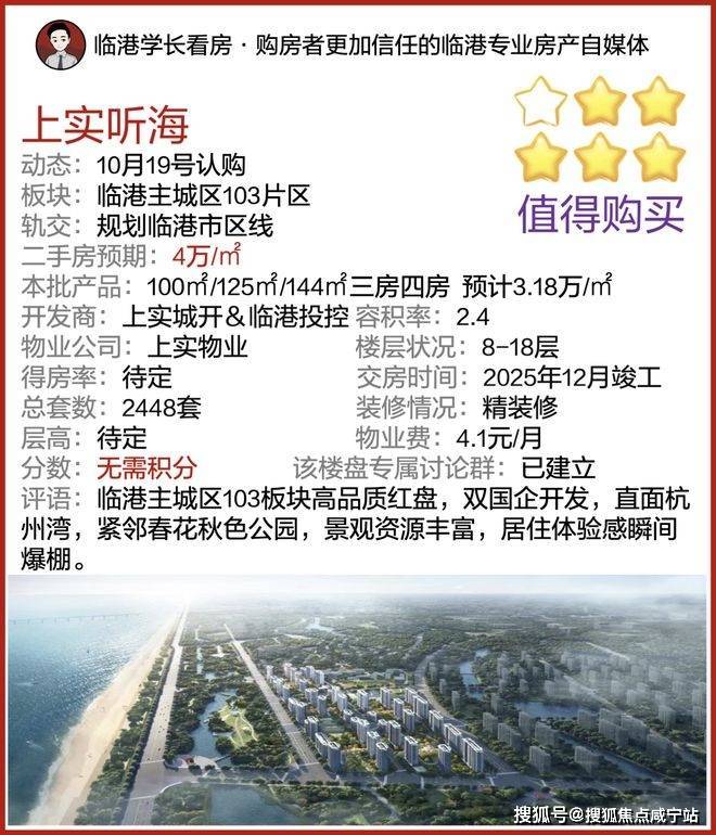 最新消息,一房一价表发布!临港主城区103片区「上实听海」正在认购!推出建面约100-144㎡三房四房,均价约3.18万元/㎡!
