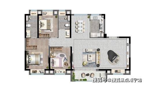 在户型设计上,上实听海同样可圈可点。一梯两户的设计,不仅保障了住户的私密性,减少了邻里间的干扰,更营造出一种专属、尊贵的居住氛围。以约 100㎡的三房户型为例,空间布局合理,动静分离,让休息区与活动区互不干扰,有效提升了居住的舒适度。客厅宽敞明亮,与餐厅、阳台相连,形成了一个开阔的公共活动空间,无论是家庭聚会还是招待朋友,都不会显得局促。卧室的设计也十分用心,配备了飘窗,既增加了室内的采光面积,又为住户提供了一个可以惬意欣赏窗外美景、放松身心的角落。