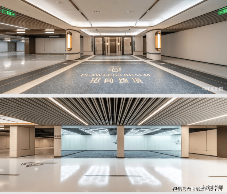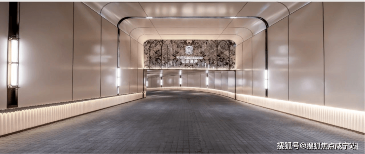 过去在豪宅项目才能看到的类似于“星空顶”地下车库坡道,招商臻境使用了看来更加高级的香槟金色吊顶,并加上穹顶闪耀的“追光”坡道!