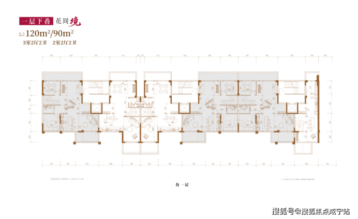 建面约120㎡3房2厅2卫/90㎡2房2厅2卫(一层下叠):