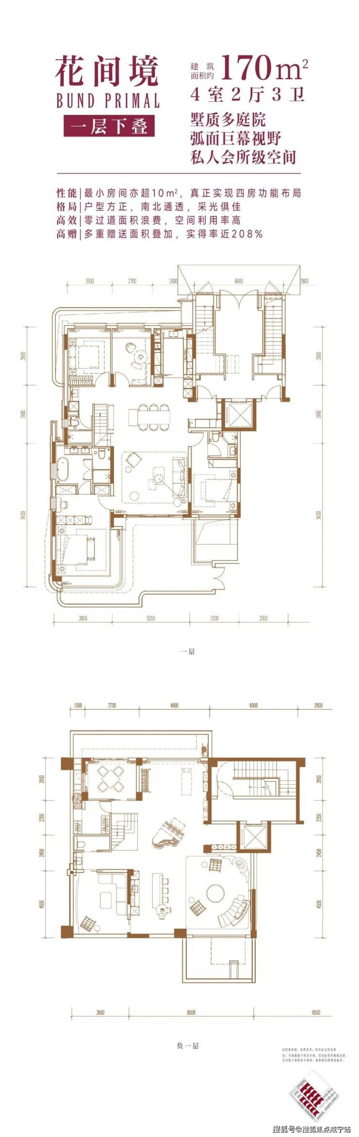建面约82㎡2房2厅2卫/110㎡3房2厅2卫(四层上叠):