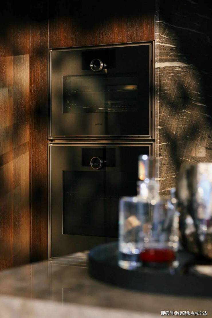 厨房部分采用嘉格纳7件套,包含灶具,油烟机、洗碗机、蒸箱、烤箱、两个冰箱,部分型号采用嘉格纳全球首发的艺境系列(原S400);