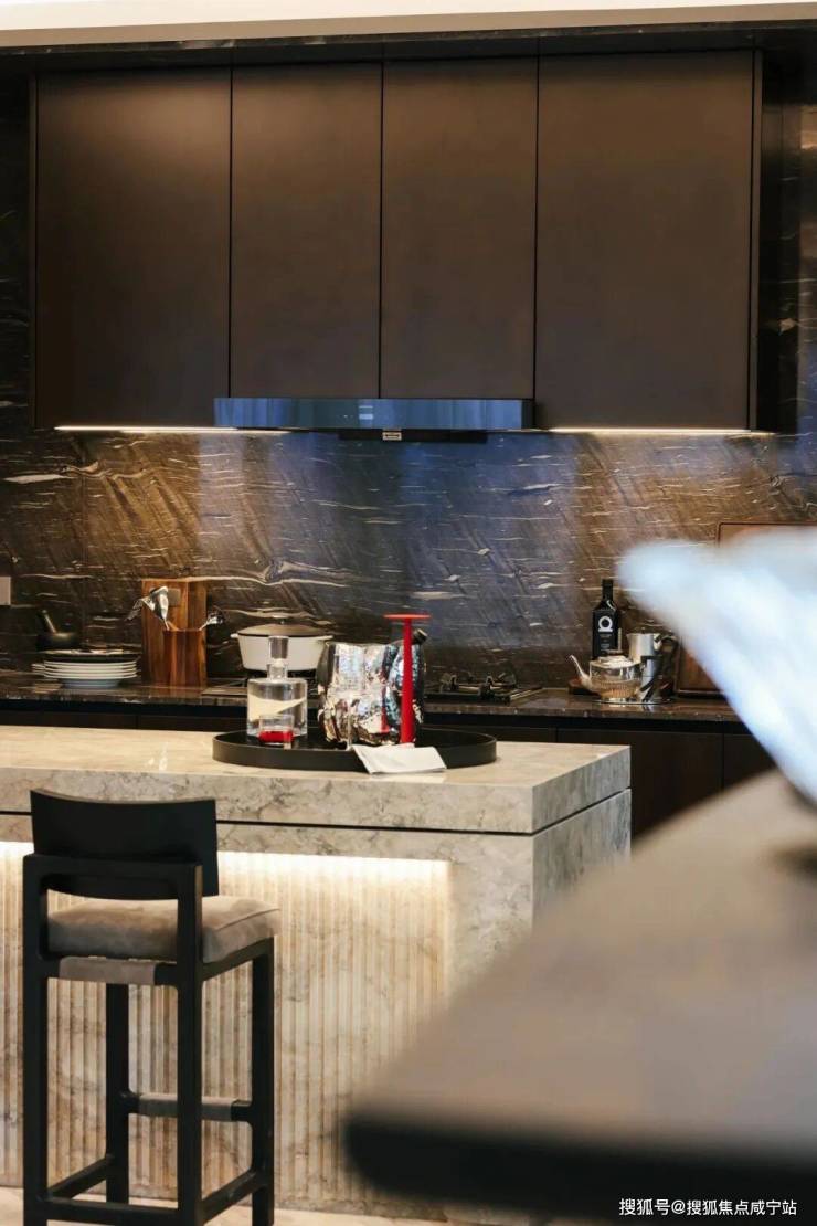 中厨橱柜采用意大利品牌Boffi精选系列,全球首款模块化无把手厨房系统;