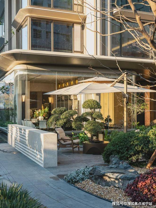 而在3、5号楼之间,则搭建了【围炉夜话】场景空间。古木纹奢石砌成的火炉旁,整木炭化石凳散发着山林野趣,一株红舞姬枫树翩然伴舞。冬日傍晚,好友围坐,体会名门温情。
