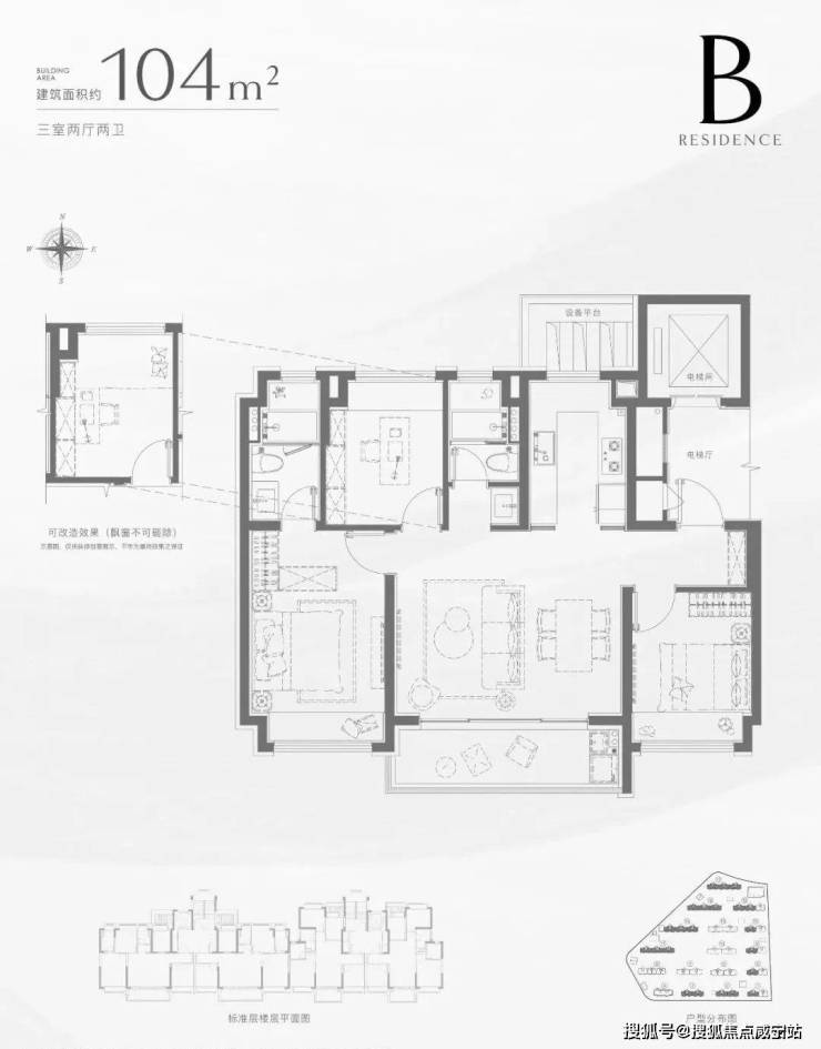 【招商中旅揽阅售楼处电话:400-880-0703】共计规划17栋12-14F小高层,首开楼栋位于整个项目的北侧,共3种户型,分别为建面约96㎡三房两卫、建面约104㎡三房两卫、建面约135㎡四房两卫。3种户型提供了全生命周期成长空间的方案。