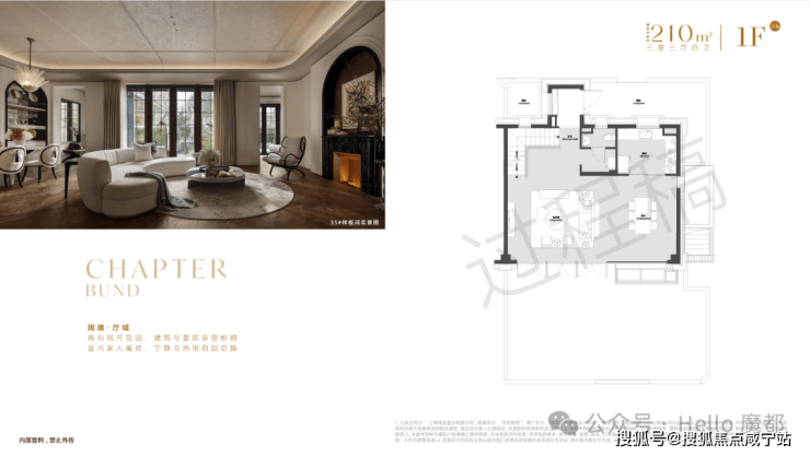 户型设计的空间革命颠覆想象:建面约210㎡风貌别墅附赠60-110㎡南北双庭院,最大面宽达11.3米,实现"花园比客厅大"的奢侈体验;133㎡洋房采用LDKB一体化布局,约6米横厅衔接8㎡景观阳台,四开间朝南的阳光尺度堪比豪宅配置。特别值得一提的是270°转角飘窗设计,在100㎡小三房户型中就实现了主卧270°采光,这种"小面积大尺度"的空间哲学,让每一户都能享受IMAX级观景视野。