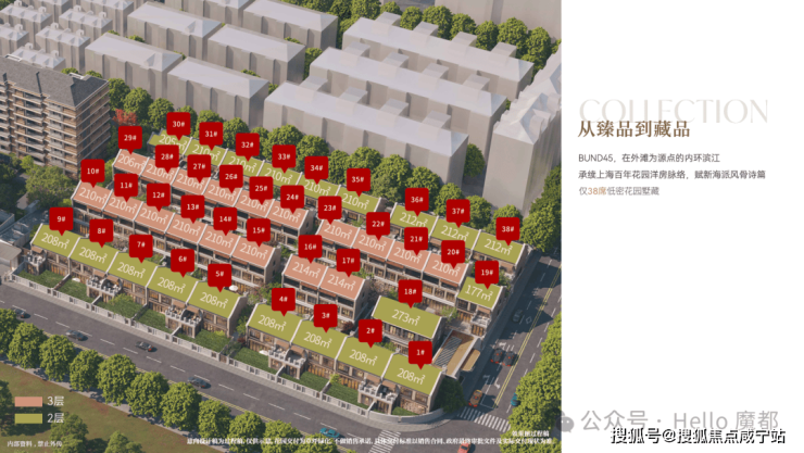 不可复制的土地禀赋在此显现:项目占据近十年来黄浦江畔罕见的纯低密地块,BUND45地块容积率仅1.2,BUND88地块约1.8,这种"别墅+洋房"的纯低密配置,在容积率普遍4.0以上的滨江带堪称孤品。更难得的是,这里因历史风貌保护形成低密九宫格组团,除西侧洋房外,其余区域限高12米,未来将保持"推窗见绿、移步见景"的开阔视野,这种规划红利在土地开发收官阶段更显珍贵。