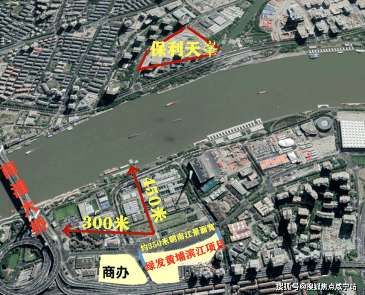 项目地块位于黄浦区的世博滨江板块,紧邻内环高架中山南路,距离黄浦江仅450米左右。南向瞰江方向视野开阔,没有高大建筑物阻挡,和对岸的保利世博项目可以隔江对望了。