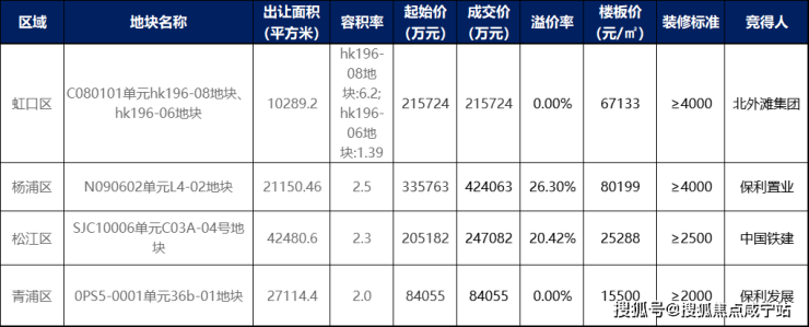其中,杨浦中环再次拍出新地王,楼板价为80199万/㎡,业内预计未来售价13万+!