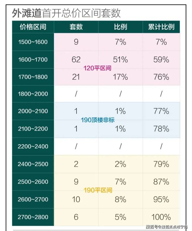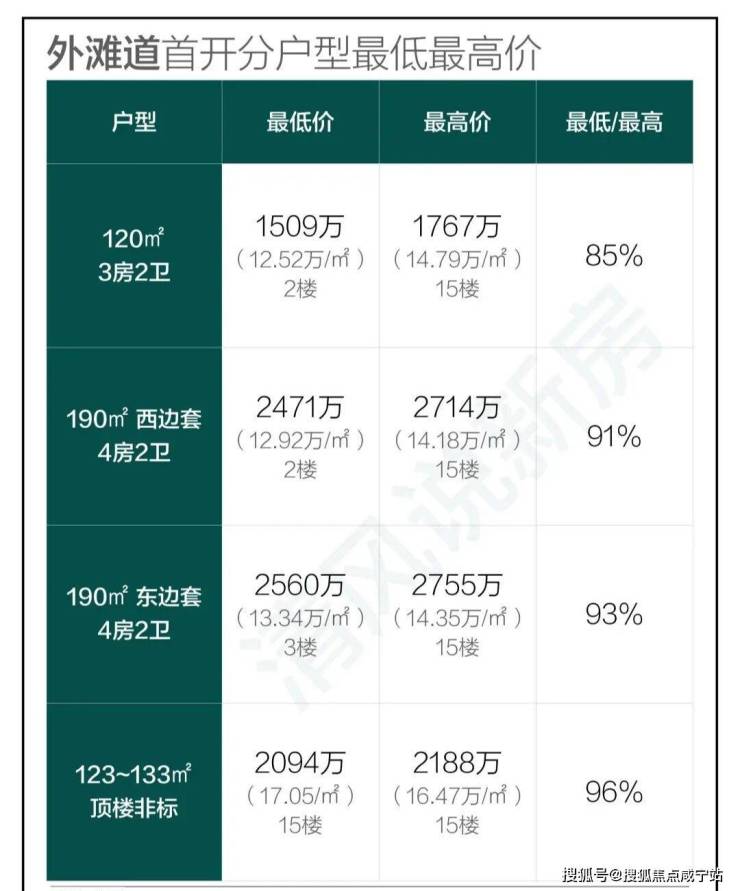 从最低最高价差来看,120㎡户型价差稍微拉开,190㎡户型价差不大。