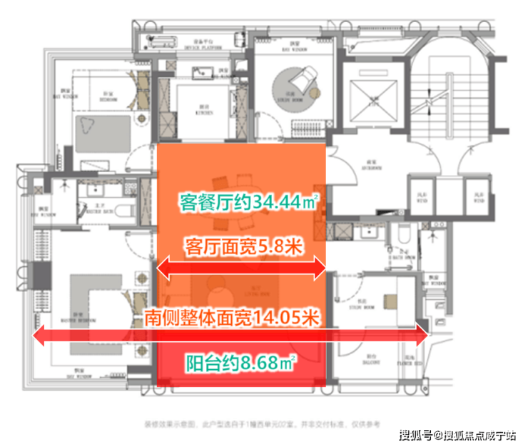 书面参数可以模仿,但5.8米等宽竖厅 + 14米南向总面宽这种组合,是对同面积户型的彻底降维。真正的改善家庭,会在第一眼就被这个尺度说服。