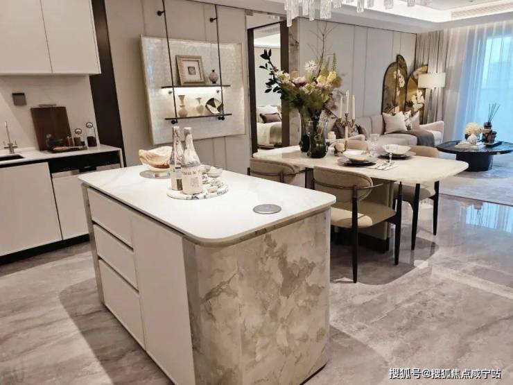 前所未及的超大尺度,结合曲面的艺术设计,使得整个室内的居住品质得到了质的飞跃!功能区的设计也充满了人本的细节设计和思考,阔朗的超大厨房设计,定制岛台,升降式插座,实现大家族式的社交式烹饪。