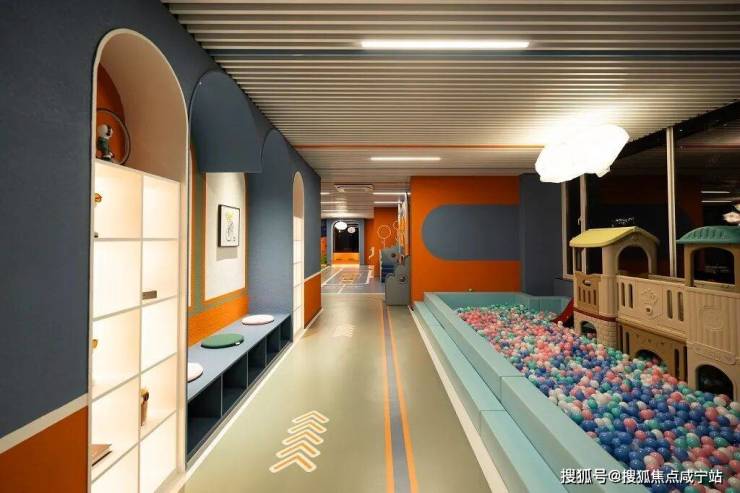 有专为小业主打造的童玩空间,配置色彩明艳的积木桌、攀岩墙、海洋球等等,全然一个家门口的遛娃胜地。