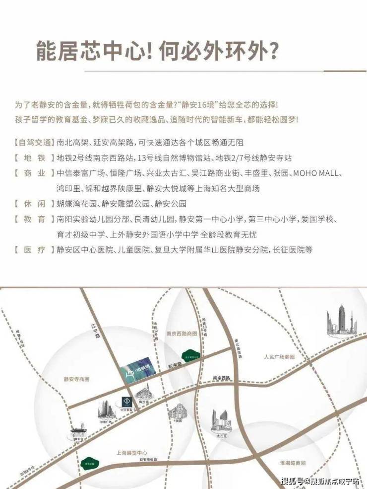南京西路700米黄金半径内,静安·拾陸境以「梅恒泰商圈」为庭院、梧桐街道为画廊,打造仅16席的奢装美寓12。项目直面老静安百年繁华与摩登潮流的碰撞——步行抵达恒隆广场、中信泰富等顶奢消费场,3条地铁线(2/12/13号线)织就全城速达网13,让商务通勤与艺术展览(上海展览中心1.2公里)皆成日常。