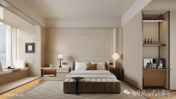主卧“小家化”设计,配双衣帽间及双台盆豪华卫浴。同时主卧直面中兴公园,晨起拉开窗帘,绿意与晨曦一同入怀。