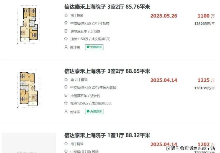 板块二手房方面,建发项目隔壁的上海院子,洋房最新成交价在12-14万之间。