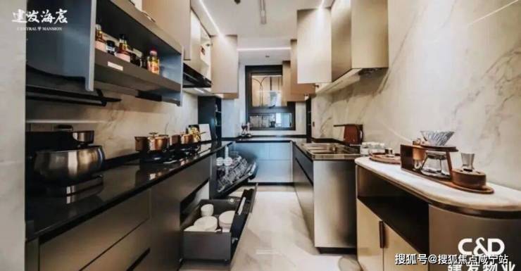 该户型厨电五件套选用“厨电界的劳斯莱斯”——嘉格纳。智能马桶、台盆、浴缸选自“世界顶级三劳”之一的劳芬,更集齐大金中央空调、地暖两联供、霍尼韦尔全热交换新风、骊住原装进口多功能水槽,YKK三玻两腔系统窗、华为鸿蒙智家系统等高规奢装,与市面上单价18万/㎡朝上的顶豪看齐!