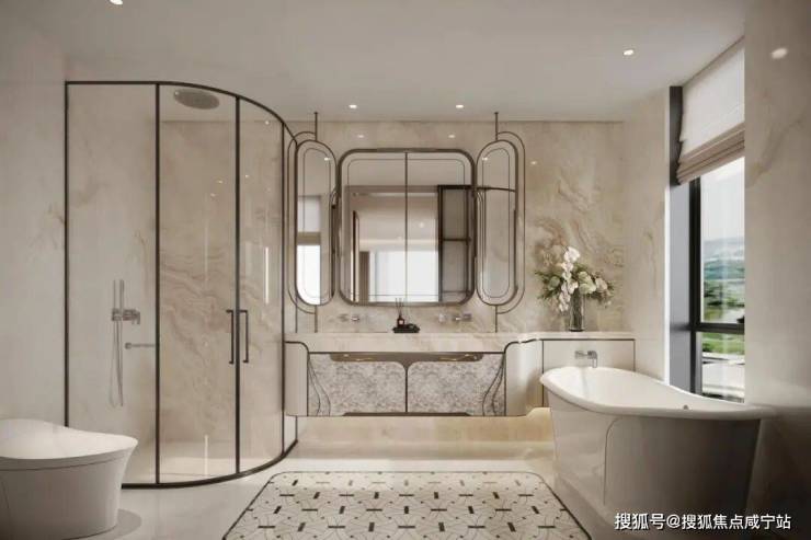 严格遵循豪宅精装标准,带来叠墅主卧的尊奢享受,五星级套房式主卧,270°环幕景观。更是带来来主卫全面升级,打造“女神卫浴”于主卫配置双美妆龙头、美妆镜柜、双补光照明、专属美妆冰箱、奥普美容舱浴霸,升级安邸豪宅杂志推荐款独立浴缸——科勒清雅石贝壳纹独立浴缸、汉斯格雅恒温花洒等,构成周全的她享主义系统。