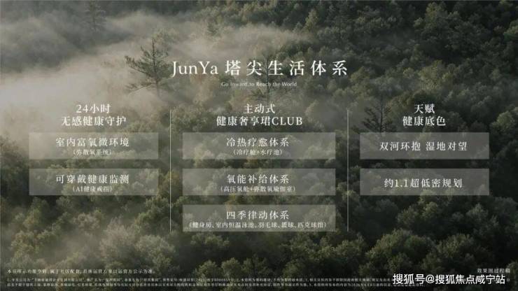 深度将滨水生活场景深度融入设计,在满足当下全龄社交、运动、休闲功能的基础上,以前瞻视野构建四大健康体系,兼顾健康管理、家庭成长与代际共融打造了行业首个全维“JunYa塔尖生活体系”