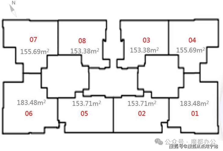 悦麟1座分为A/B单元,每个单元有四个单位