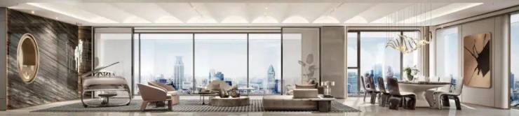 古北中央公园壹号公馆的大平层,不像别墅一样强调垂直空间,而是更注重整体的大空间和平面感。俯瞰广阔的城景,带来的不仅是身份的尊崇感,还有生活品质的进阶。