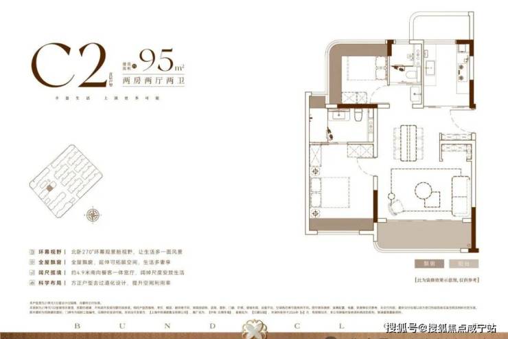 南向约4.9米的餐客一体宽厅,对比同价位段内其他项目4.3米左右的面宽,更是降维打击,搭配上270°宽幕视野,无界享受森系景观的绿意。