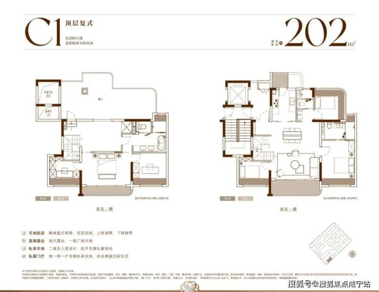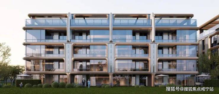 项目还规划了下沉式庭院,搭配叠水、绿植,形成立体景观。在滨江这种地段,愿意把土地拿出来做景观,本身就是一个态度。