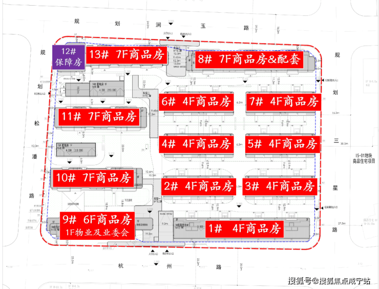 根据设计方案,项目拟建7栋4F叠拼、5栋6-7F洋房及1栋8F保障房。