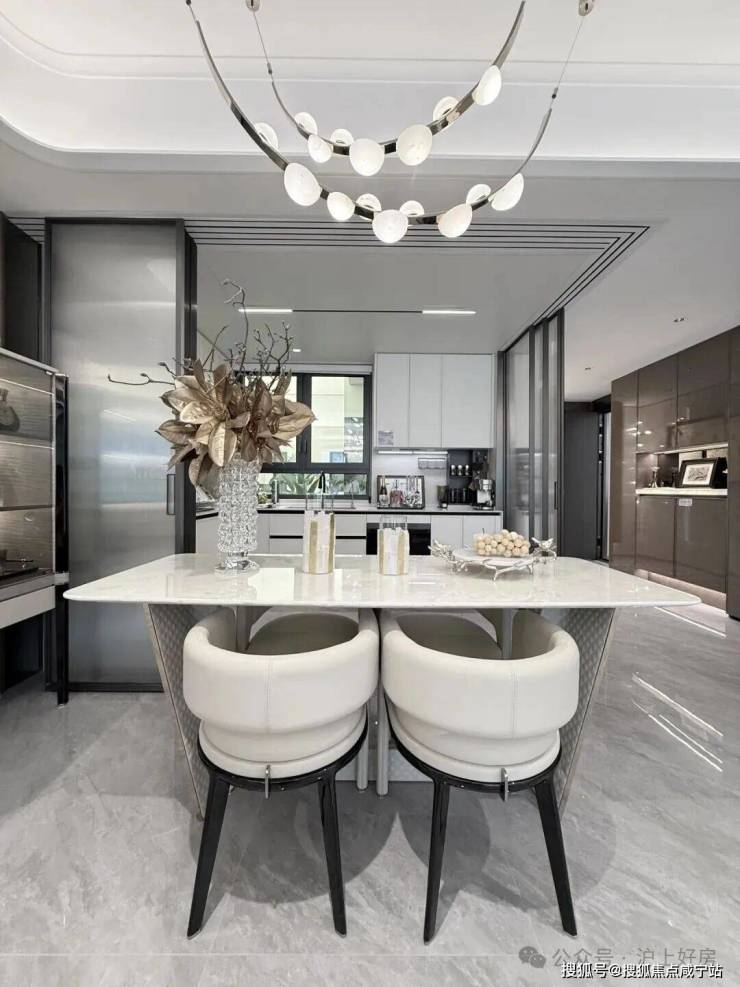 宽幕横厅将客厅、餐厅与厨房流畅衔接,形成一个敞亮通透的超级家庭厅。巨大的开间尺度赋予空间极强包容性,无论是家庭日常互动、亲友欢聚畅谈,还是举办小型派对,都能在此从容展开,成为承载温馨与欢乐的理想场所。