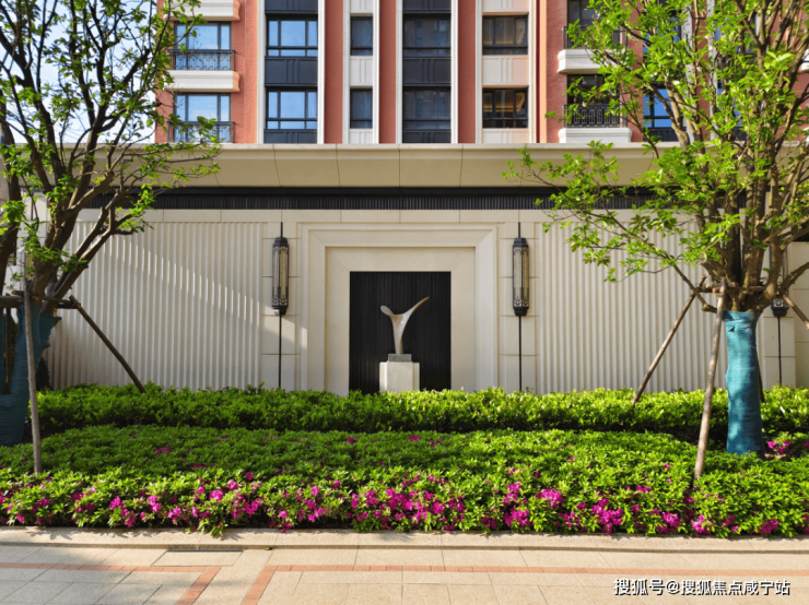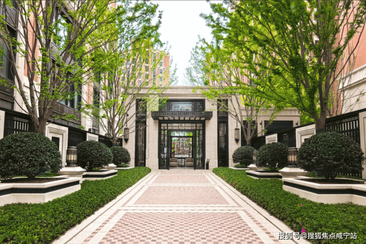 项目外立面采用进口葡萄牙米黄石材与日本爱和陶红砖,通过精心设计的比例和细节处理,呈现出经典与现代完美结合的建筑美学。这种材质选择不仅保证了建筑立面的耐久性,更赋予了社区浓厚的文化底蕴和艺术价值。