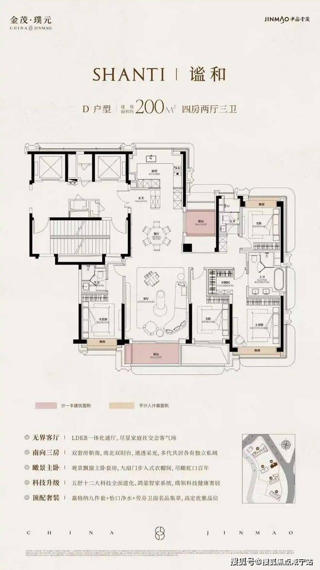 目前,金茂璞元热度持续。三期【璞瑄200】建面约200㎡宽幕大宅,为上海藏家开元立璞