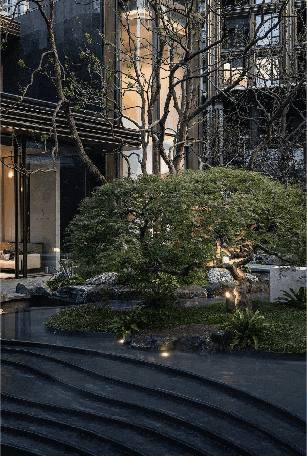 “三藏五绝”不仅是对物料的精选,更是对物之精神的追寻。璞熠琉璃的光影、独山璞玉的温润、千度陶板的肌理,无声融入日常;而百年冬青的生机、太行乌金的厚重、银河奢石的璀璨,则共同构建出一处充满敬意与美感的居住场域。