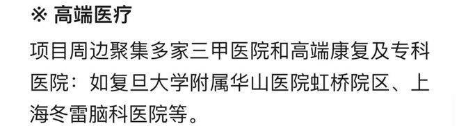 医疗配套:复旦大学附属华山医院虹桥院区、上海冬雷脑科医院等