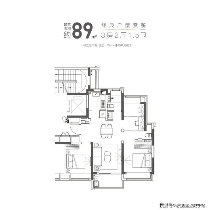 建面约89㎡3房2厅:三开间朝南,全飘窗设计,舒适度爆表!