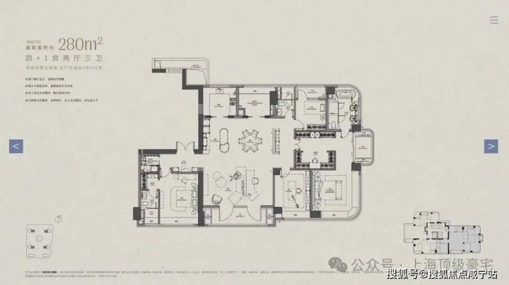 建面约280㎡,总价4300-5600万,折算单价15.3-20万元/㎡