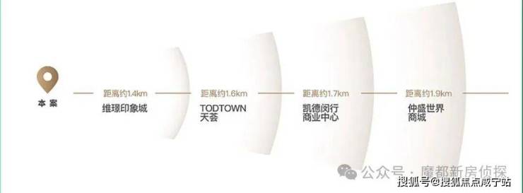 繁华芯:直线距离约3km范围内TOWN天荟、莘庄维璟印象城、万象城等一站式购物中心环伺。