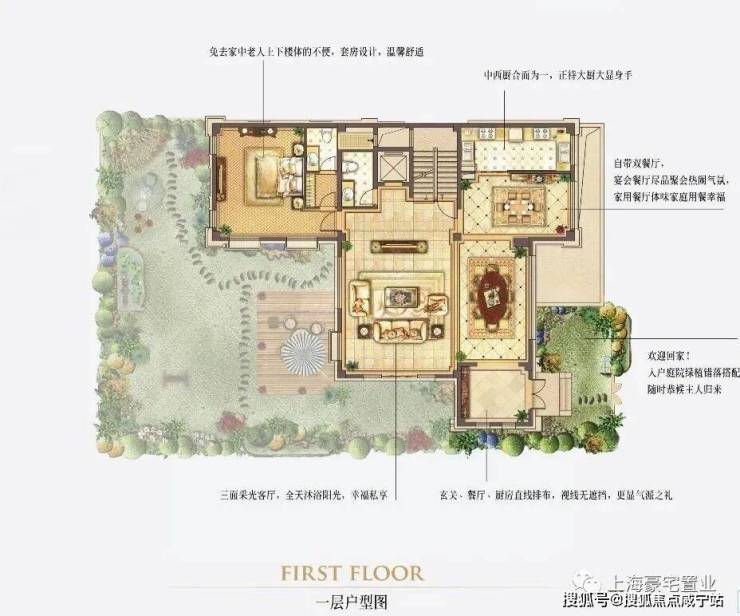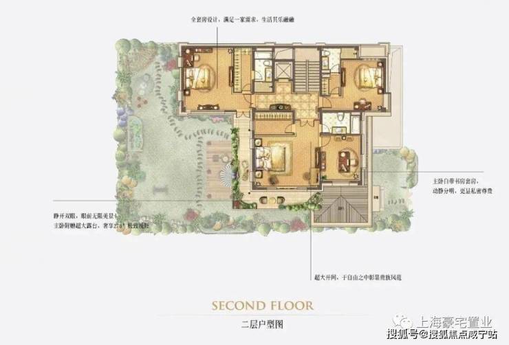 除此之外,每户都自带有2个下沉式私家花园及入户花园,其花园总面积更是达到了200平。