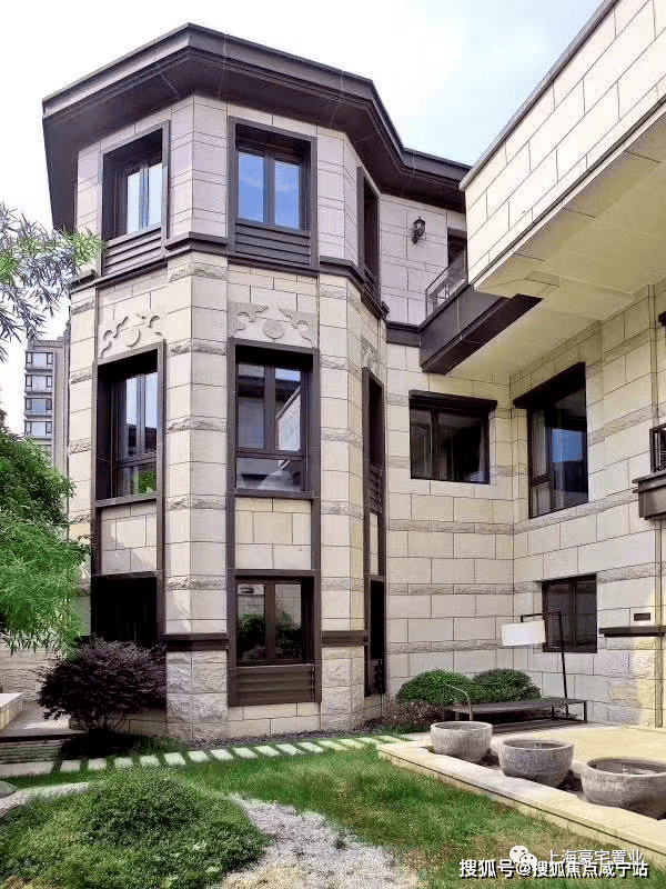 项目外立面采用石材干挂设计,延续了经典的 artdeco风格 ,外立面线条丰富细腻,使整栋别墅古朴优雅,但方正的轮廓与简洁的线条却又赋予了别墅明快的现代活力。