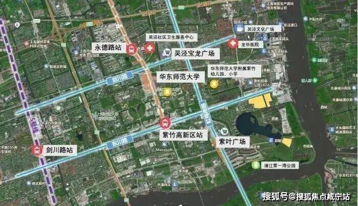 地块所在的紫竹区域占据浦江上游第一湾独特地理位置,核心区域有闵行第一大湖兰香湖,水域面积广阔,岸线绵延,湖光潋滟.